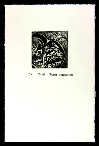 | Informations complémentaires: | Techniques : eau forte Édition rehaussée : non Dimensions de l'oeuvre : 6.5 X 6.5 cm Support : Somerset Dimensions du support : 25 X 16 cm Copie d'atelier : oui Livre d'artistes : non Tirage : c.a. |