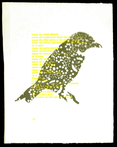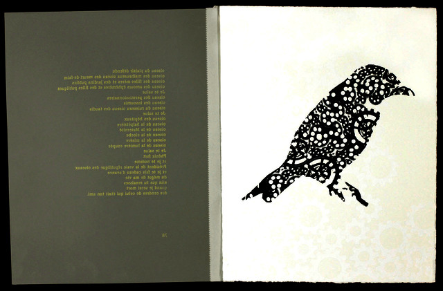 St-Ours, Mélina (2011) oiseau quotidien (livre d'artistes «p.78») ( Fermé et ouvert). [Estampe]