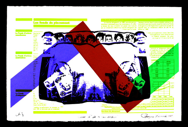 | Informations complémentaires: | Techniques : sérigraphie Édition rehaussée : non Dimensions de l'oeuvre : 27 X 48 cm Support : Vélin Arches Dimensions du support : 32.5 X 50.5 cm Copie d'atelier : oui Livre d'artistes : oui / "Dans l'fond..." Tirage : I/I |