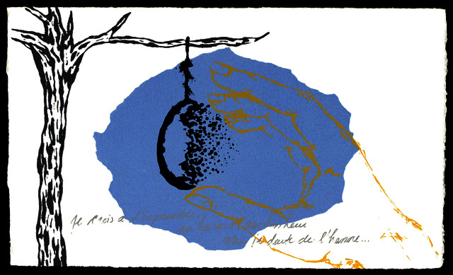 | Informations complémentaires: | Technique : Sérigraphie Édition rehaussée : non Dimensions (hauteur / largeur) de l’œuvre: 15,5cm X 26cm Support : Somerset Copie d’atelier : oui Livre d’artistes : oui, «Un feu me hante» Copie : c/a Œuvre inspirée d’un extrait du livre de Jean-Marc La Frenière |