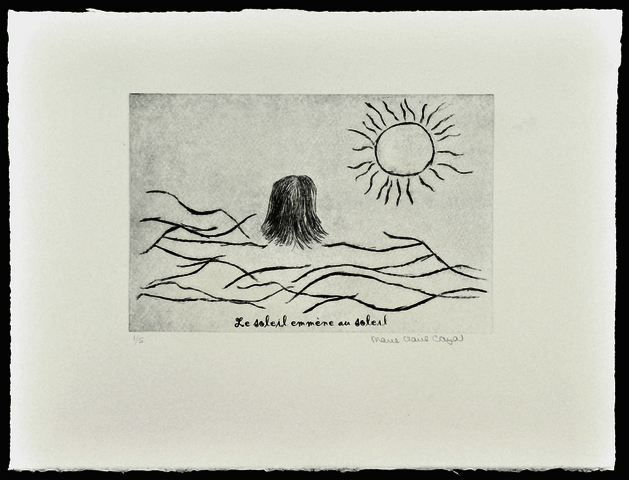| Informations complémentaires: | Technique : Pointe sèche sur cuivre Édition rehaussée : non Dimensions (hauteur/largeur) de l’œuvre : 6 x 9 po Support : Somerset Dimensions (hauteur/largeur) du support : 15 x 12 po Copie d’atelier : non Livre d’artistes : non Copie :1/5 |