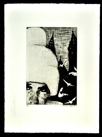 | Informations complémentaires: | Technique : Pointe sèche sur cuivre Édition rehaussée : non Dimensions (hauteur/largeur) de l’œuvre : 9 x 6 po Support : Somerset Dimensions (hauteur/largeur) du support : 15 x 11 po Copie d’atelier : non Livre d’artistes : non Copie :2/12 |