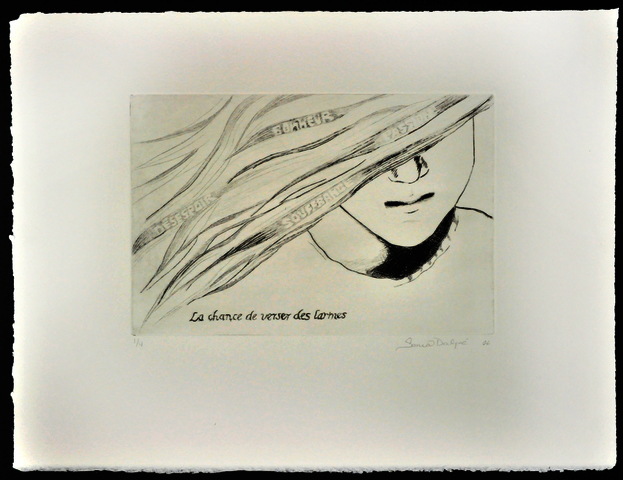 | Informations complémentaires: | Technique : Pointe sèche sur cuivre Édition rehaussée : non Dimensions (hauteur/largeur) de l’œuvre : 6 x 9 po Support : Somerset Dimensions (hauteur/largeur) du support : 11 x 15 po Copie d’atelier : non Livre d’artistes :non Copie :1/4 |
