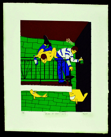 | Informations complémentaires: | Technique : Sérigraphie Édition rehaussée : non Dimensions (hauteur / largeur) de l’oeuvre : 21,5cm X 16,8cm Support : Somerset Dimensions (hauteur / largeur) : 30,4cm X 24,6cm Copie d’atelier : oui Livre d’artistes : oui, «Piquant Picasso» Copie : c/a |