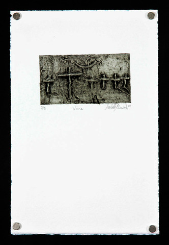 | Informations complémentaires: | Techniques : Collagraphie Édition rehaussée : non Dimensions de l'oeuvre : 6.5 X 11.5 cm Support : Somerset Dimensions du support : 28 X 9 cm Copie d'atelier : non Livre d'artistes : non Tirage : 3/5 |